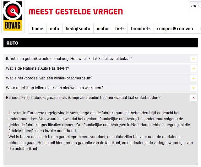 Het antwoord op deze vraag en nog veel meer kunt u lezen op de website van de BOVAG onder het tabblad "faq"